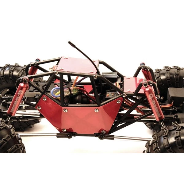 The RTR R1 rock buggy is now equipped with 2.4GHz radio system, 27T RS-540, Brushed ESC with instant reverse and drag brakes, plus a high torque metal geared servo. Add those to the R1’s already impressive list of features such as a light weight tube chassis design, heavy duty portal axles for high strength and higher ground clearance. The G-Transition shocks allow you to custom tune your suspension setup for terrain ranging form smooth slick rock to boulders. With 4-link suspension, 2.2 beadlock wheels, and Bighorn Tires the R1 RTR will tame your trails.